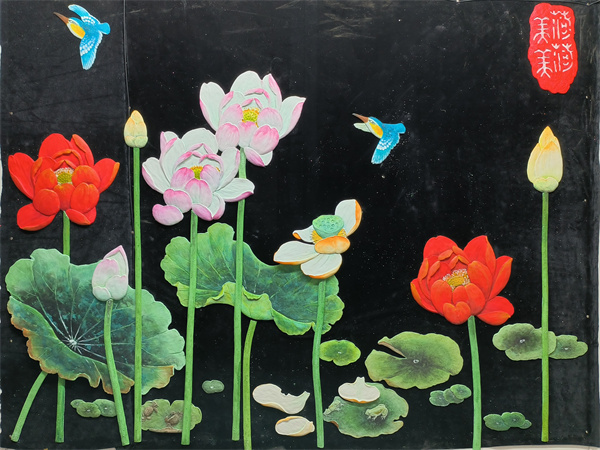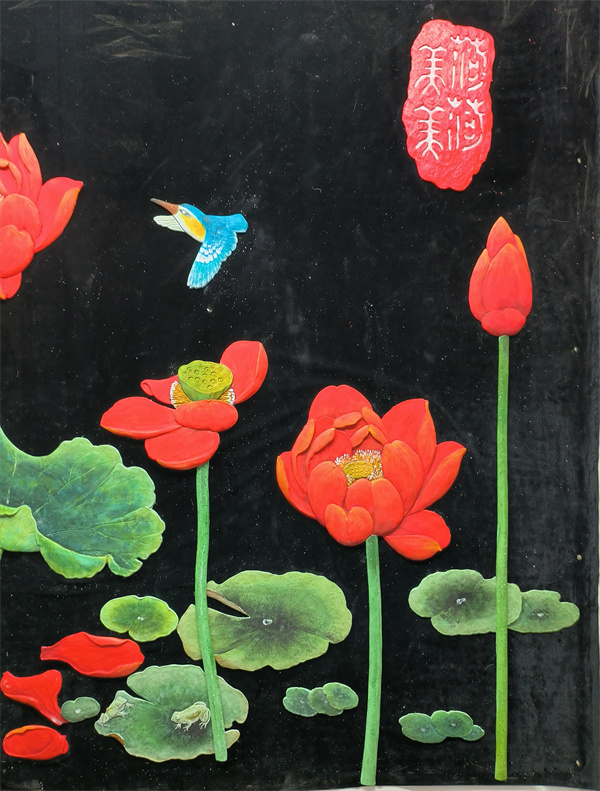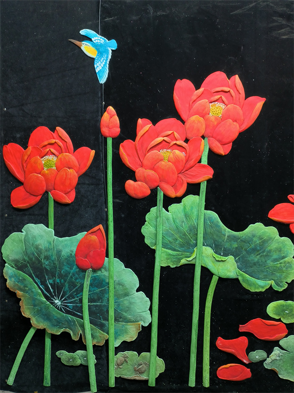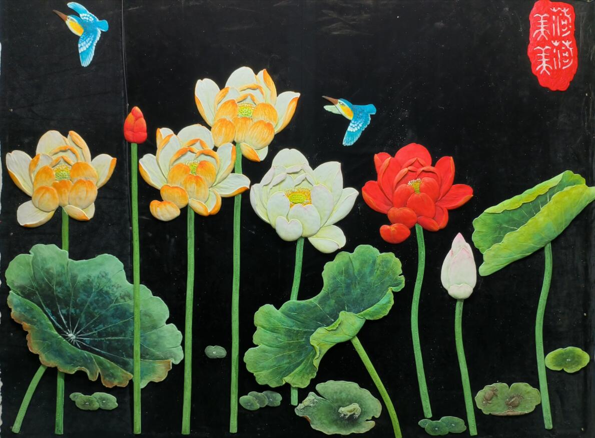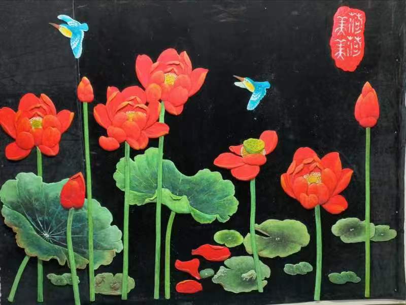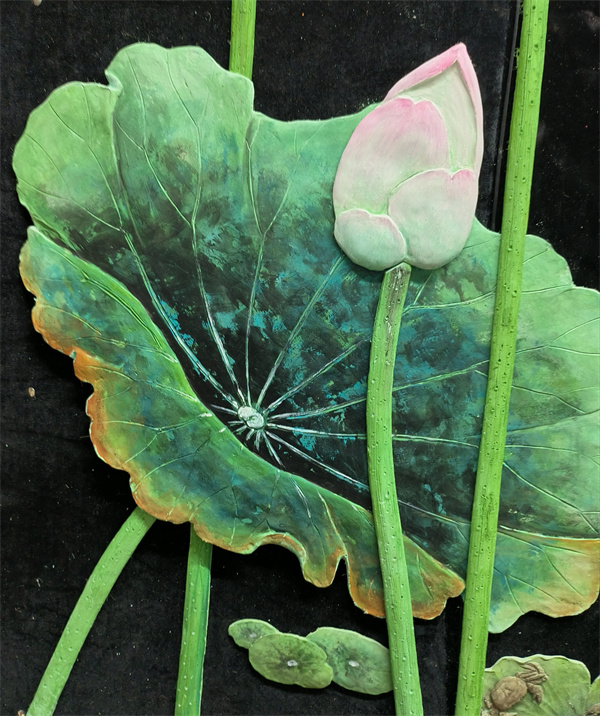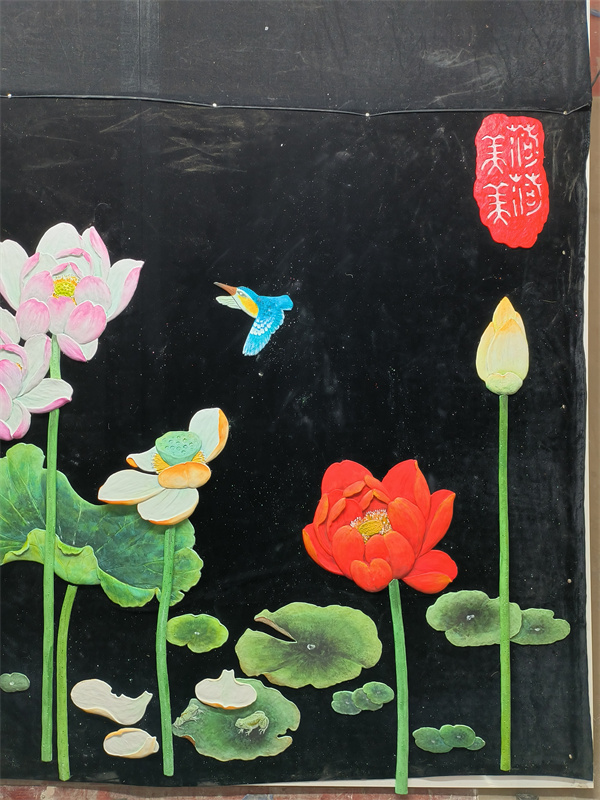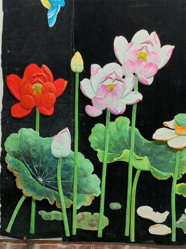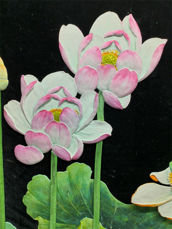 兰舍硅藻泥浮雕雕刻大菏花水平粘附在画