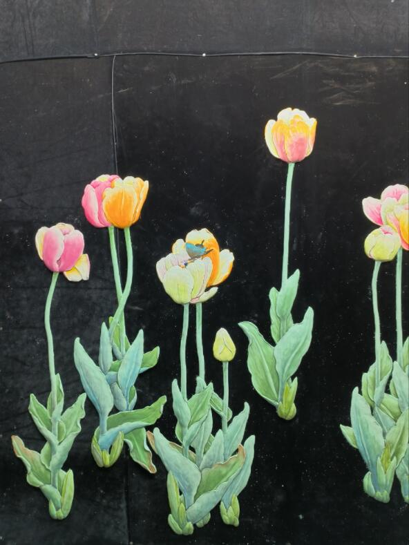 乳胶漆雕刻大玉兰花平行面拷贝画